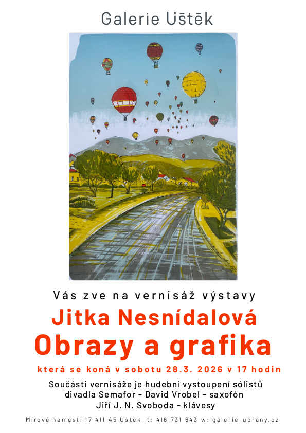 V sobotu 28.3. v 17 hodin vás srdečně zveme do galerie na letošní druhou slavnostní vernisáž výstavy originálů a grafik. Svojí tvorbu na ní představí mladá a nadějná výtvarnice, absolventka AVU Jitka Nesnídalová. Připravili jsme si pro vás průřez z její tvorby litografií a maleb na plátno, které zachycují městská zátiší, přírodu, ale i zážitky z cest.