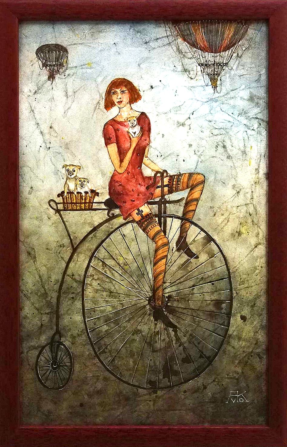 Rozměry včetně rámu: 28x43,5 cm. Technika: akvarel na ručním papíře. Rám/sklo.