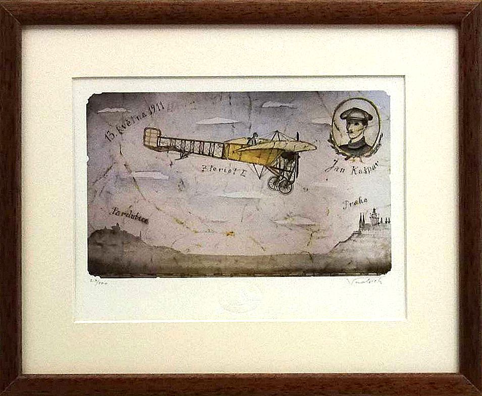 Úvod > Aleš Vondřich > Umělecké tisky - menší > Aleš Vondřich - První vzlet inženýra Jana Kašpara - signovaný umělecký tisk