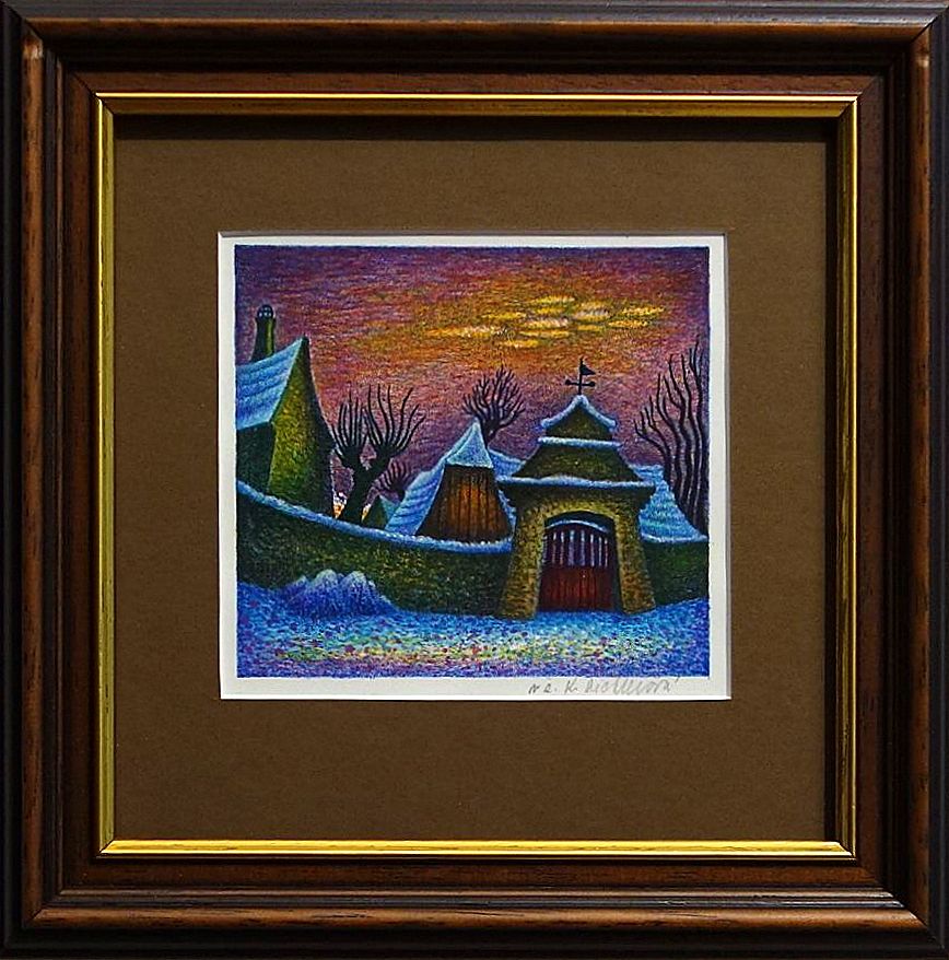 Rozměry včetně rámu: 25,5x25,5 cm. Technika: litografie. Rám/pasparta.