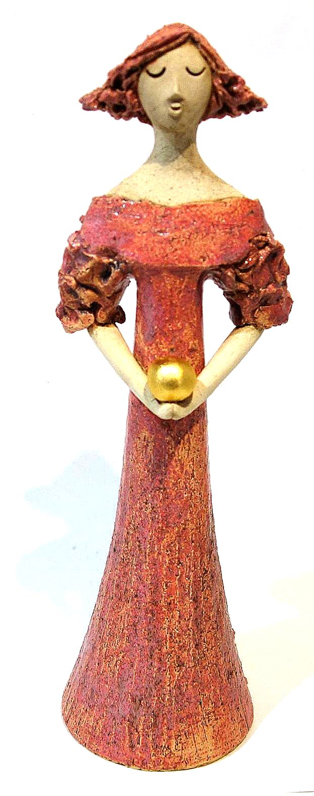 Výška: 38,5 cm. Technika: pálený šamot s glazurou, mrazuvzdorné. Signováno ET.