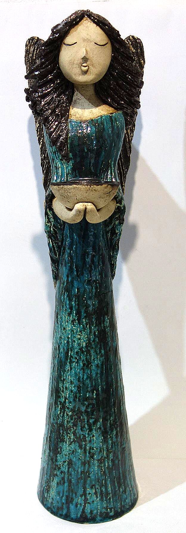 Výška: 60 cm. Technika: pálený šamot s glazurou, mrazuvzdorné. Signováno ET.