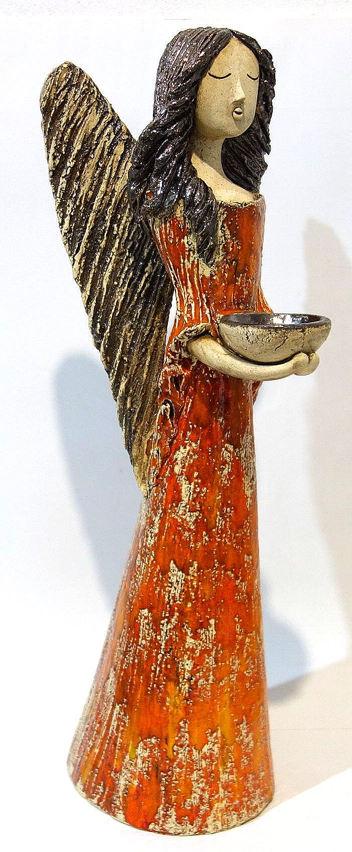 Výška - 60 cm. Technika: pálený šamot s glazurou, mrazuvzdorné. Signováno ET.