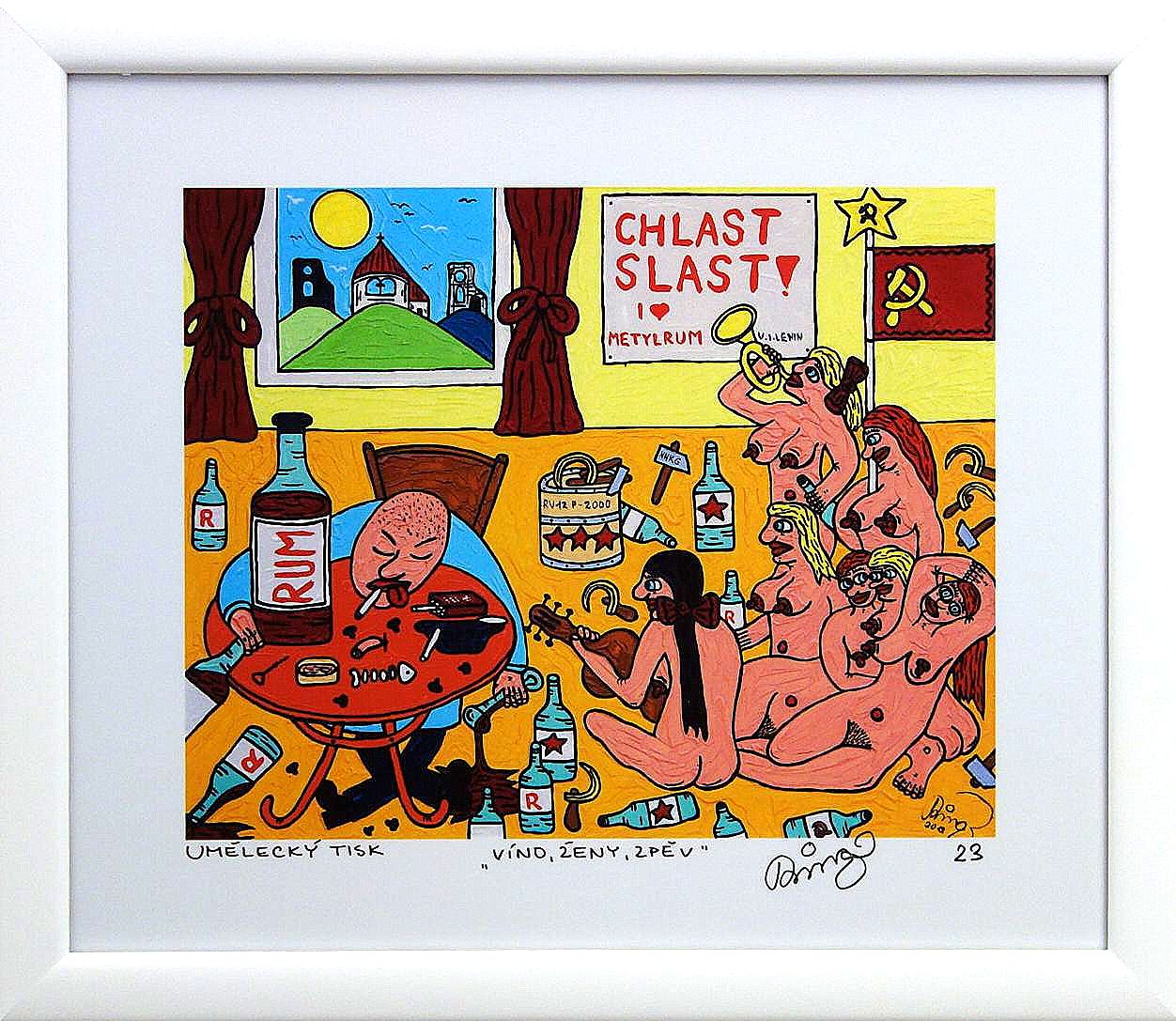 Úvod > František R. Čech > Umělecké tisky - všechny > František R. Čech - Víno, ženy, zpěv - signovaný umělecký tisk v rámu