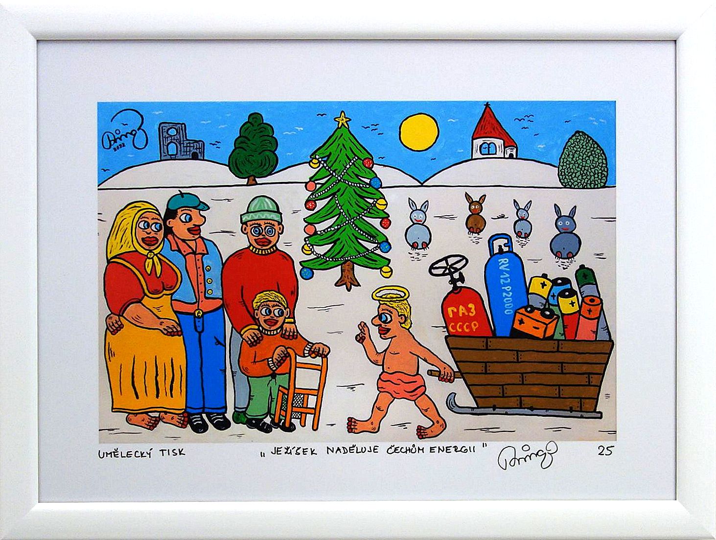 Úvod > František R. Čech > Umělecké tisky - všechny > František R.Čech - Ježíšek naděluje Čechům energii - signovaný umělecký tisk v rámu