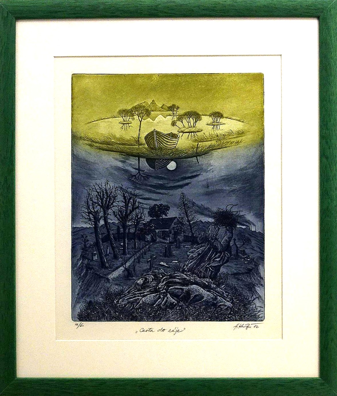 Rozměry včetně rámu: 40,5x47 cm. Technika: lept, akvatinta, č. 26/60. Rám/pasparta.