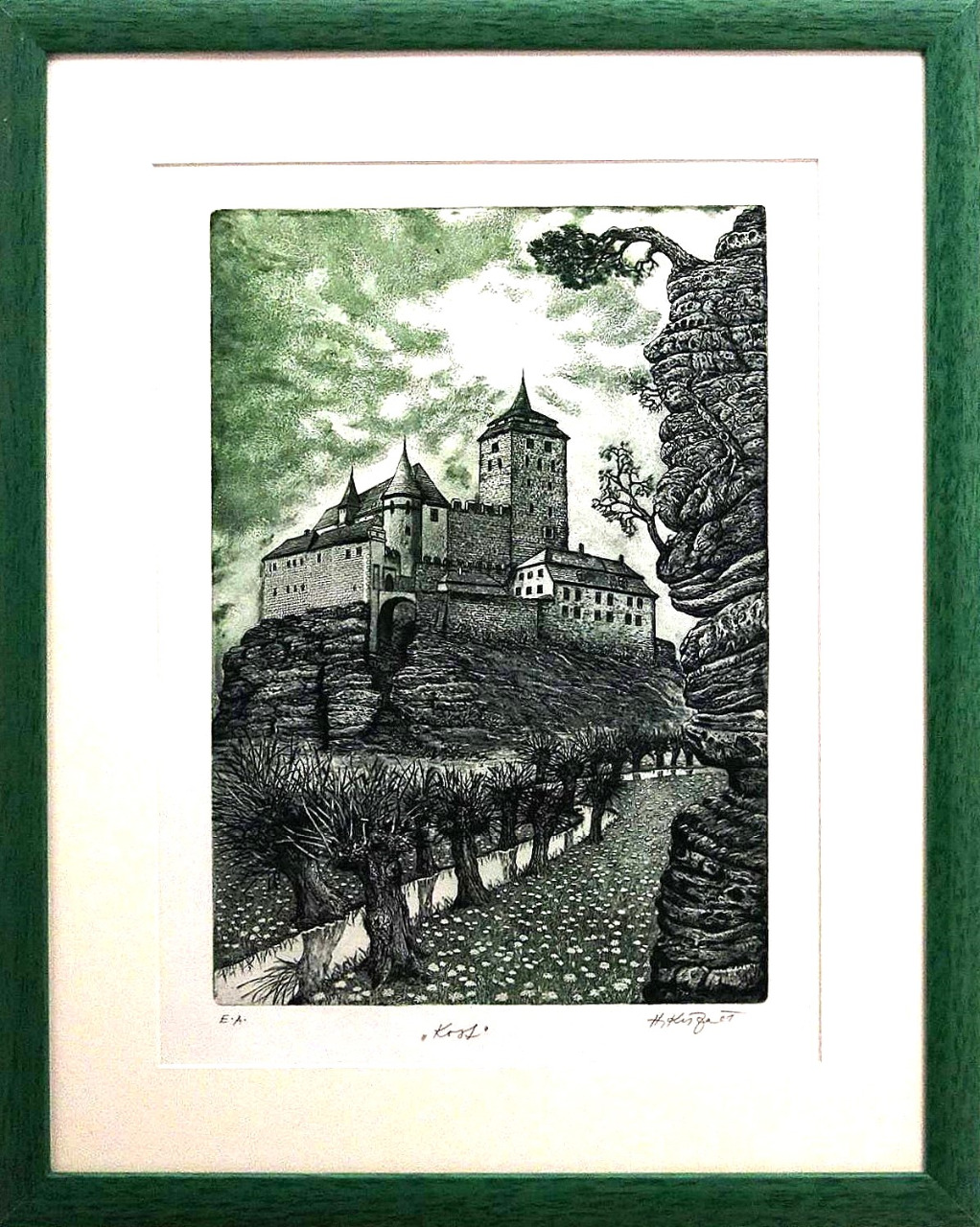 Rozměry včetně rámu: 40x50,5 cm. Technika: lept, akvatinta. Rám/pasparta.
