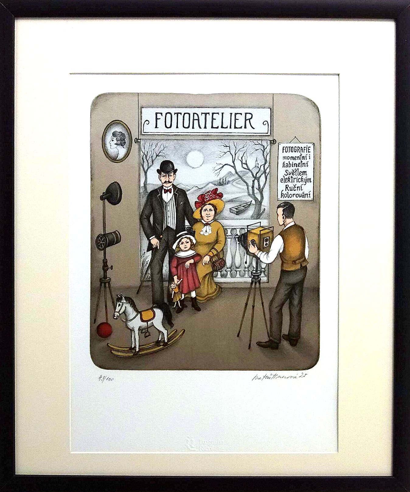 Rozměry včetně rámu: 49x58 cm. Technika: litografie, č. 45/100. Rám/pasparta.