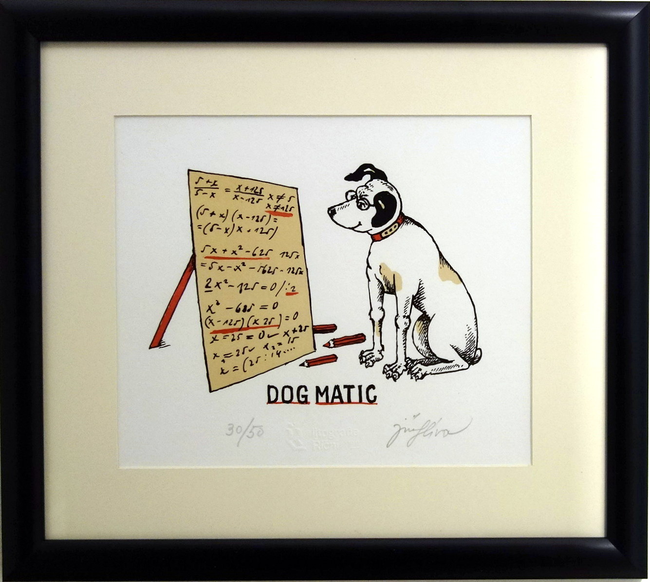 Rozměry včetně rámu: 34,5x39 cm. Technika: litografie, č. 30/50. Rám/pasparta.