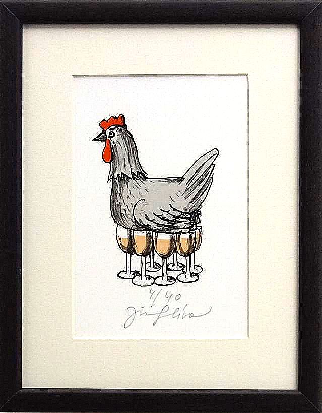 Jiří Slíva - Slepice na víně - grafika
