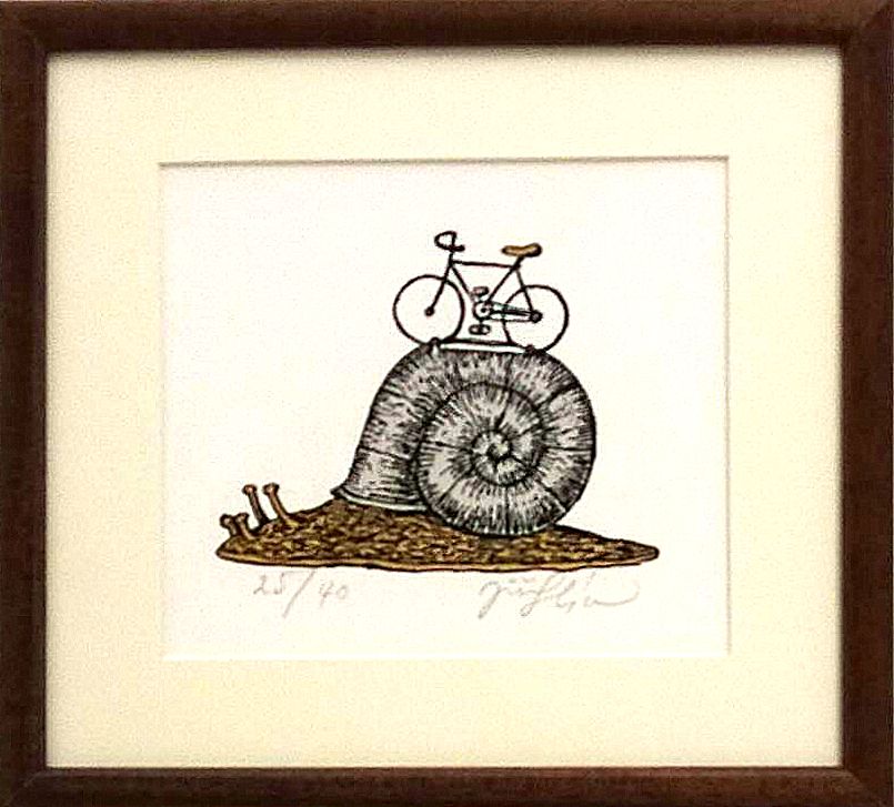 Rozměry včetně rámu: 22x24 cm. Technika: litografie, č. 25/40. Rám/pasparta.