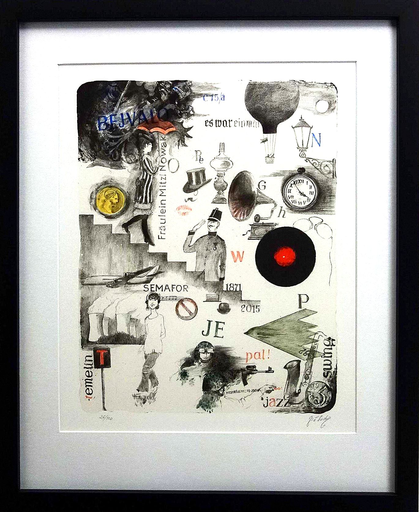 Rozměry včetně rámu: 44,5x54,5 cm. Technika: litografie, č. 26/120. Rám/pasparta.