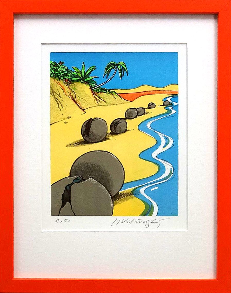 Josef Velčovský - Pláž na Novém Zélandu - grafika