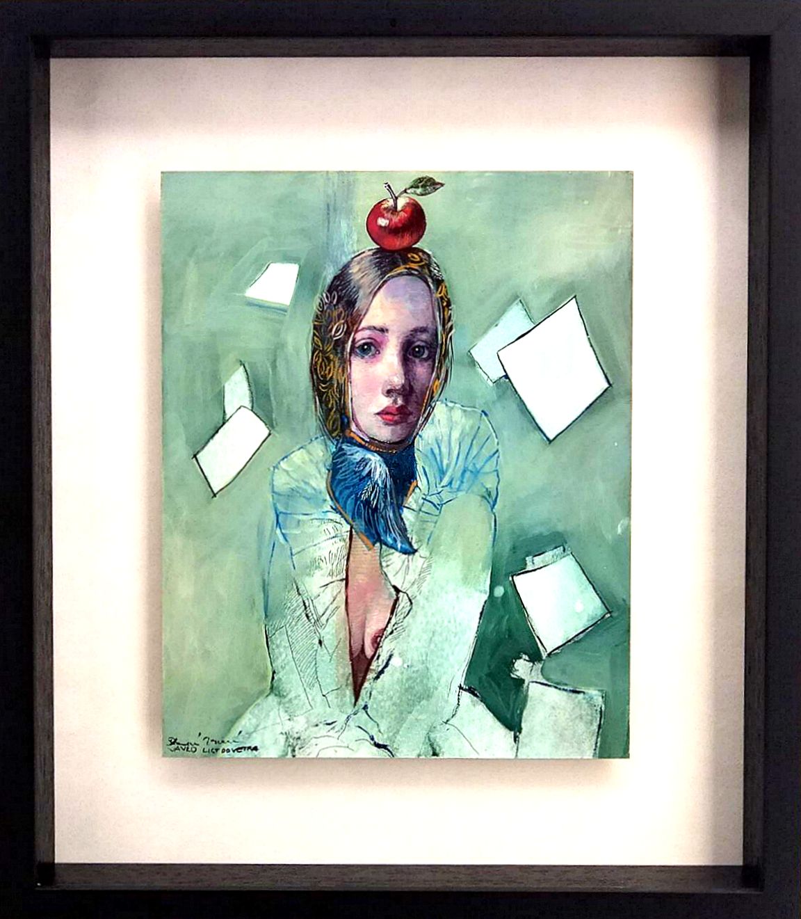 Rozměry včetně rámu: 40x46 cm. Technika: kombinovaná, olej a perokresba, galerijní sklo. Rám/deska.