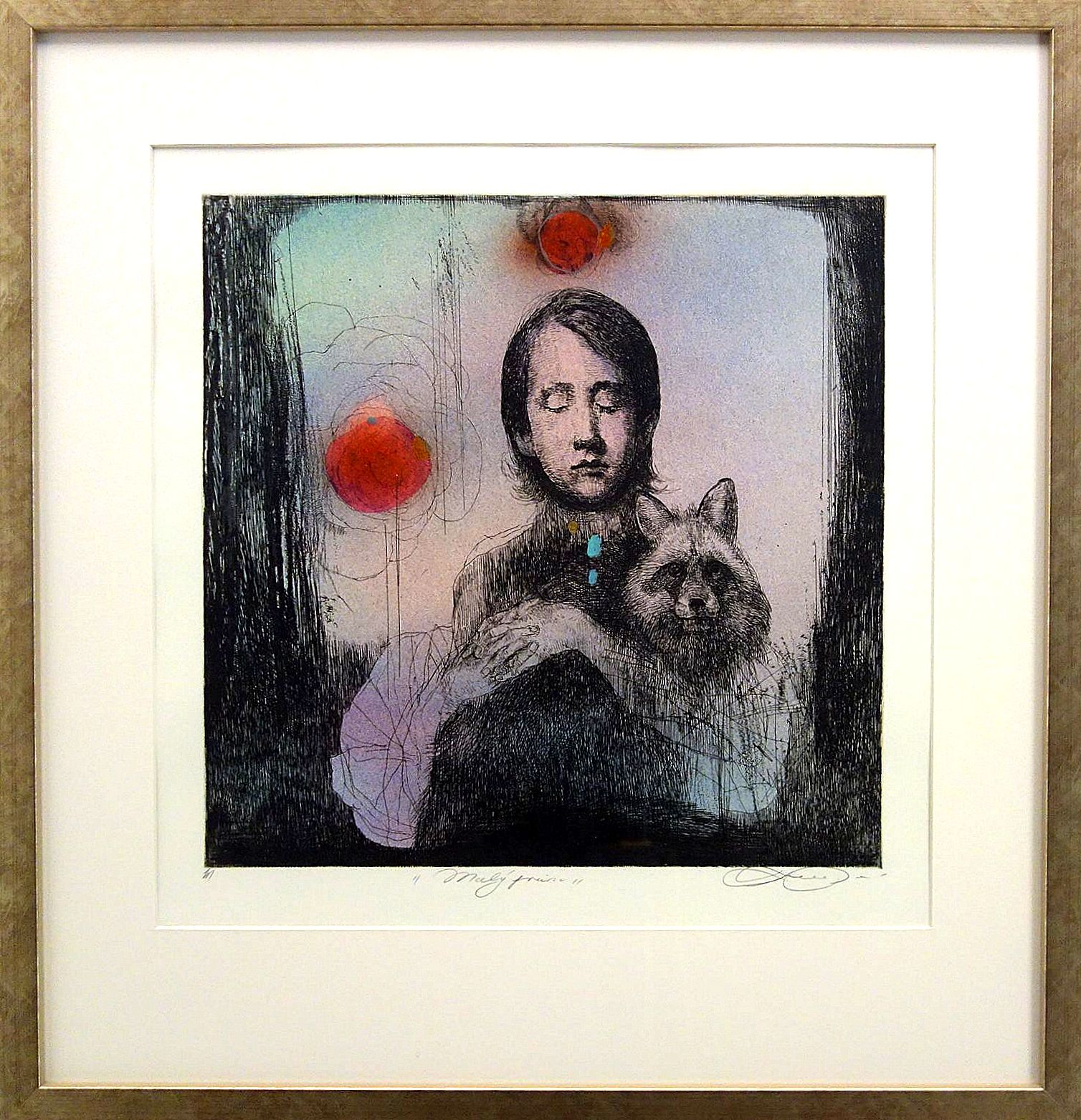 Rozměry včetně rámu: 47,5x49,5 cm. Technika: kolorovaná grafika. Rám/pasparta.