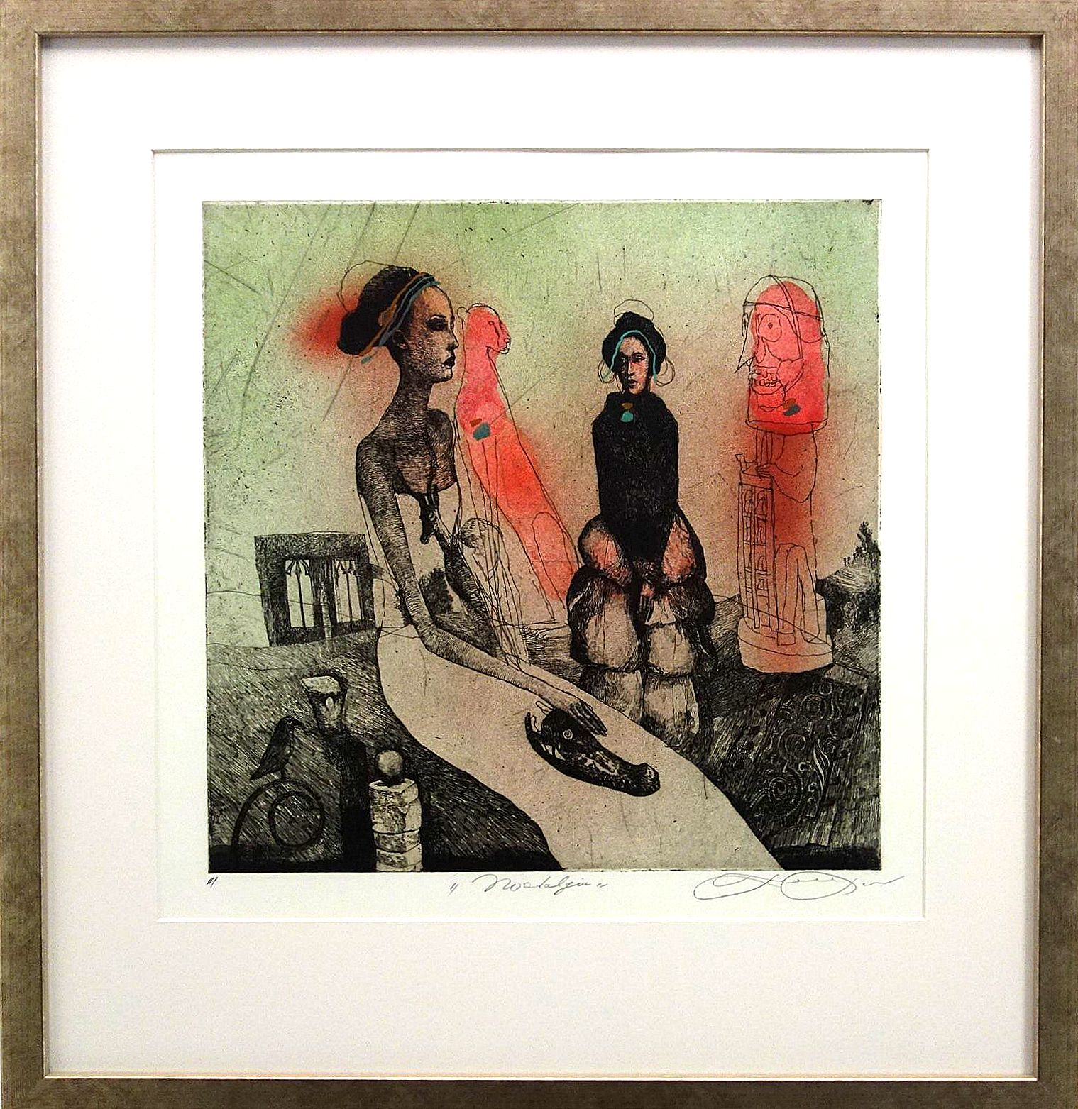 Rozměry včetně rámu: 47,5x49,5 cm. Technika: kolorovaná grafika. Rám/pasparta.