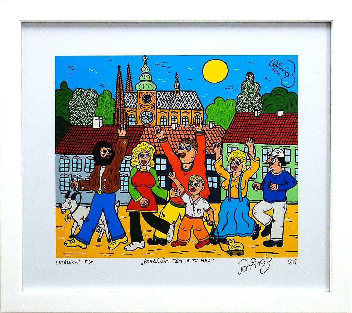 Úvod > František R. Čech > Umělecké tisky - všechny > František R.Čech - Pražákům těm je tu hej - signovaný umělecký tisk v rámu