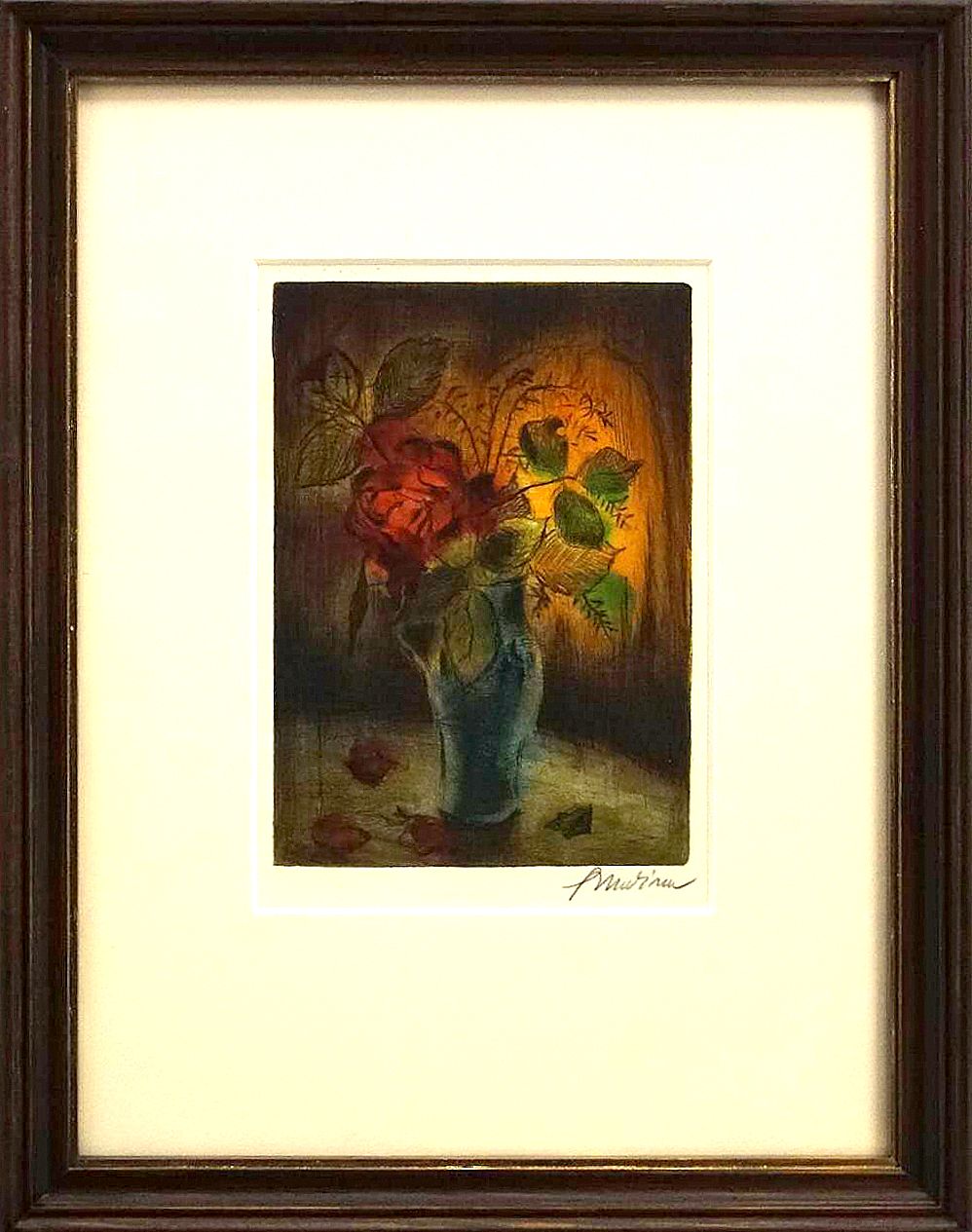 Rozměry včetně rámu: 23,5x19 cm. Technika: suchá jehla. Rám/pasparta.