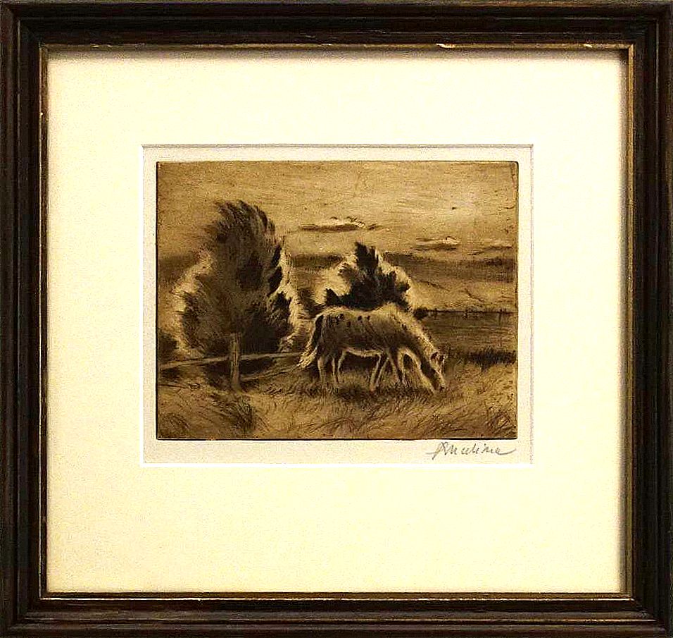 Rozměry včetně rámu: 27x29 cm. Technika: suchá jehla. Rám/pasparta.