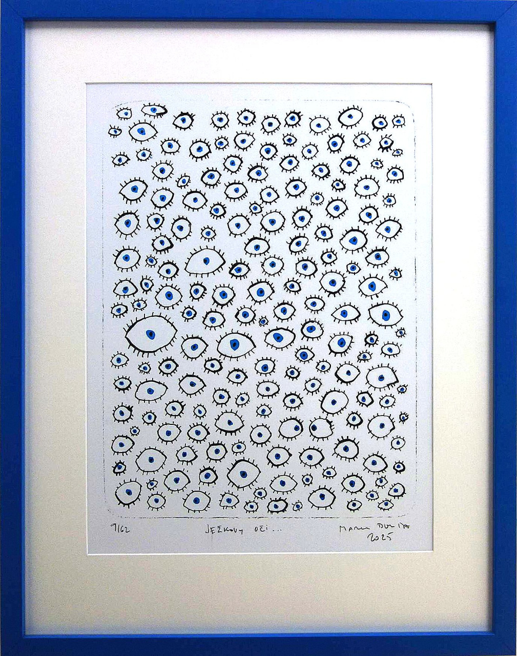 Rozměry včetně rámu: 52,5x67 cm. Technika: litografie, č. 9/62. Rám/pasparta.