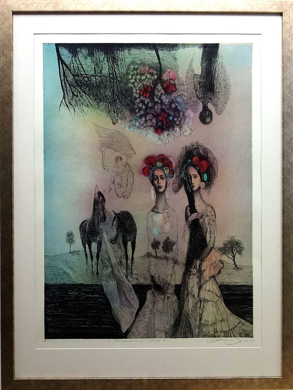 Rozměry včetně rámu: 69x92 cm. Technika: kolorovaná grafika. Rám/pasparta.