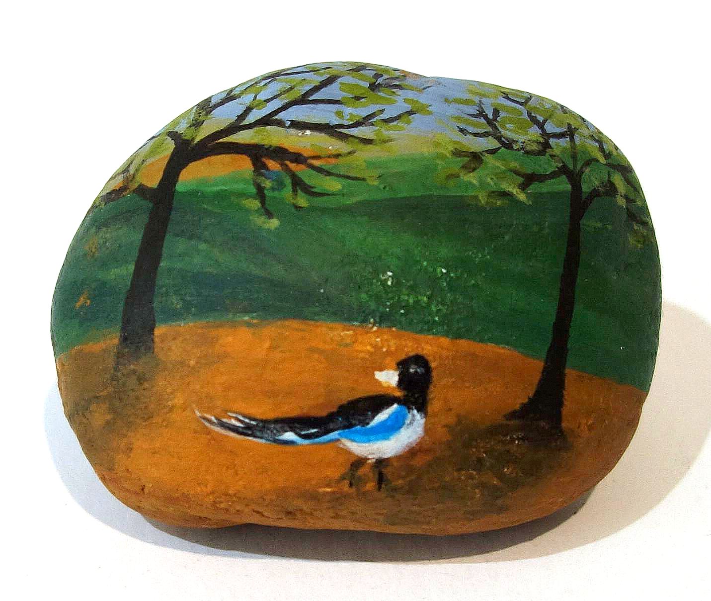 Petra Černocká - Barevný ptáček - ručně malovaný signovaný kámen
