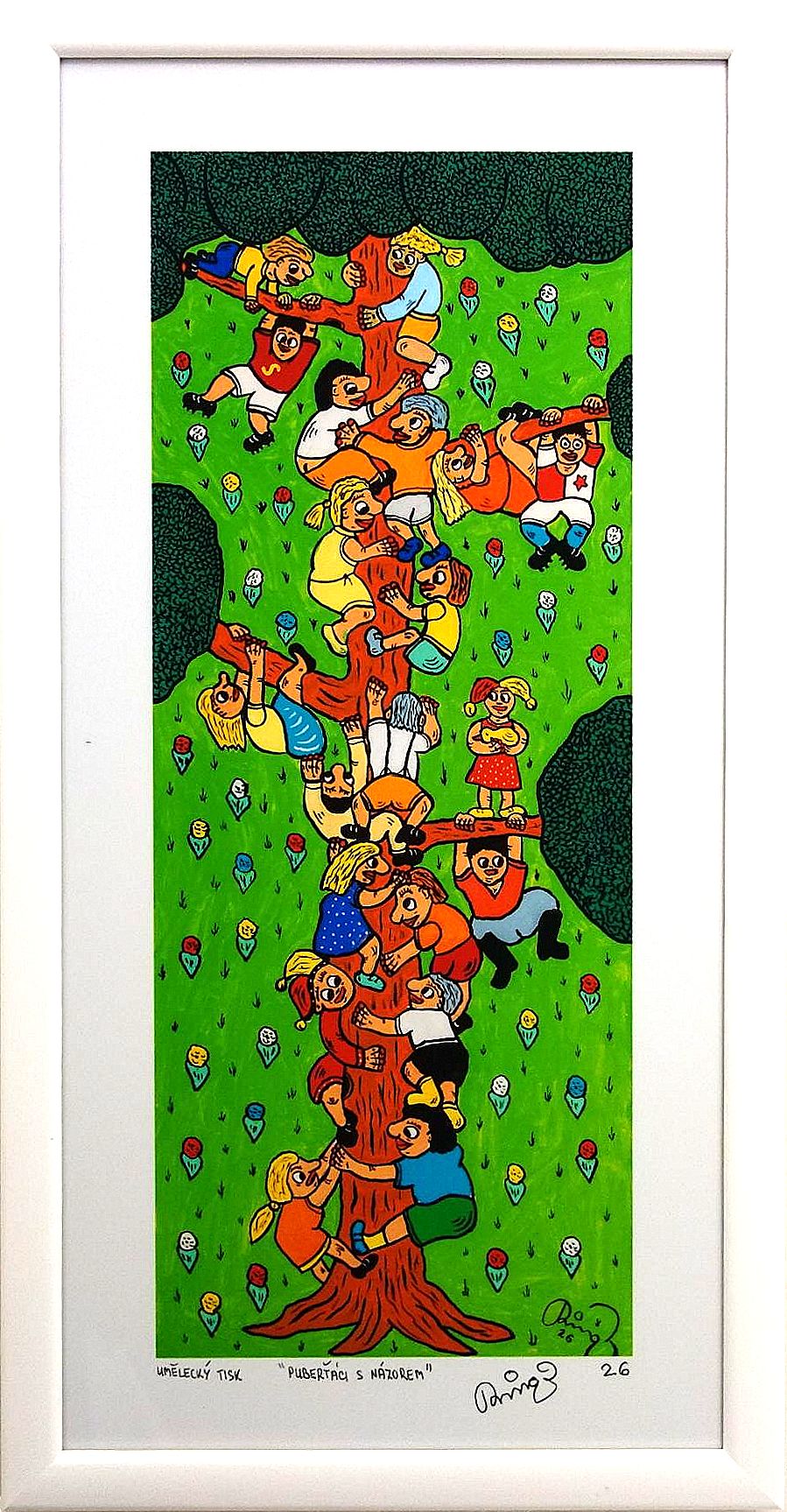Puberťáci s názorem - František R. Čech - signovaný umělecký tisk v rámu