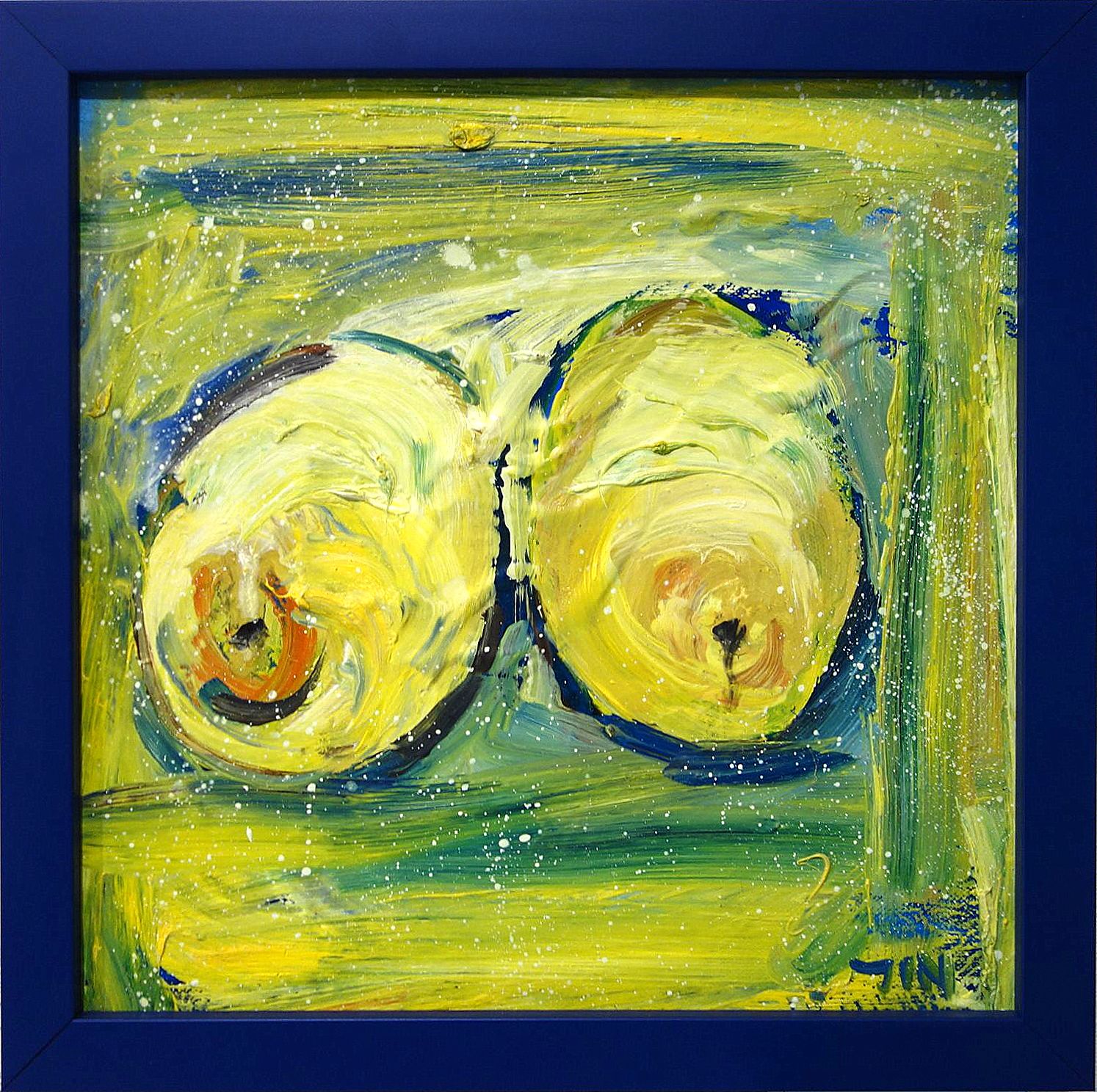 Rozměry včetně rámu: 34x34 cm. Technika: olejomalba. Rám/plátno.
