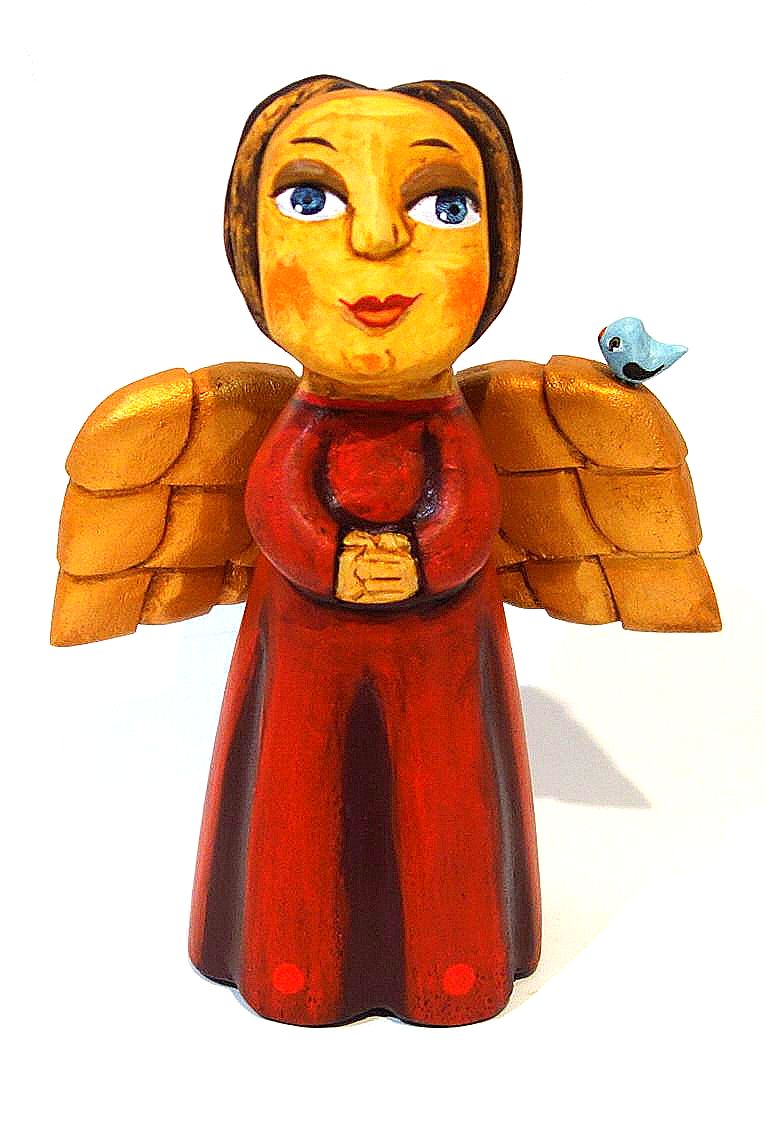 Tomáš Štolba - Andělka s ptáčkem malovaná ( červená ) - originál