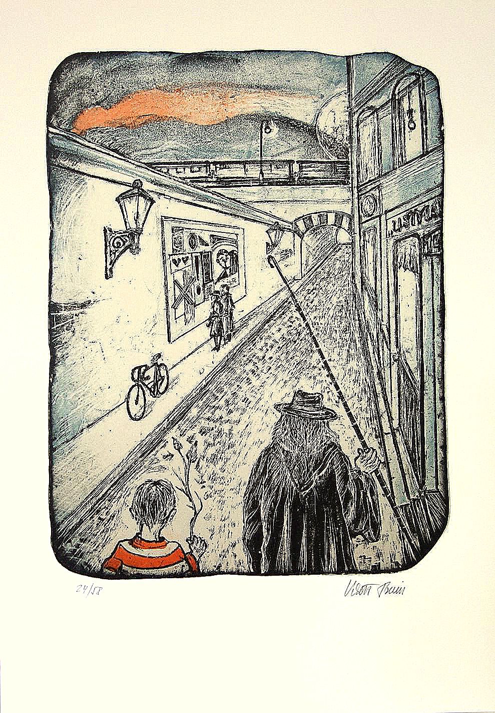 Viktor Preiss - Karlínská ulice - grafika volný list