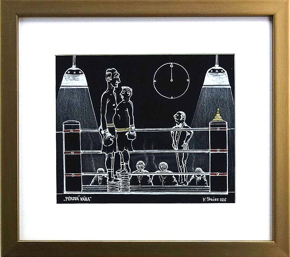 Rozměry včetně rámu: 30x33,5 cm. Technika: kresba. Rám/pasparta.