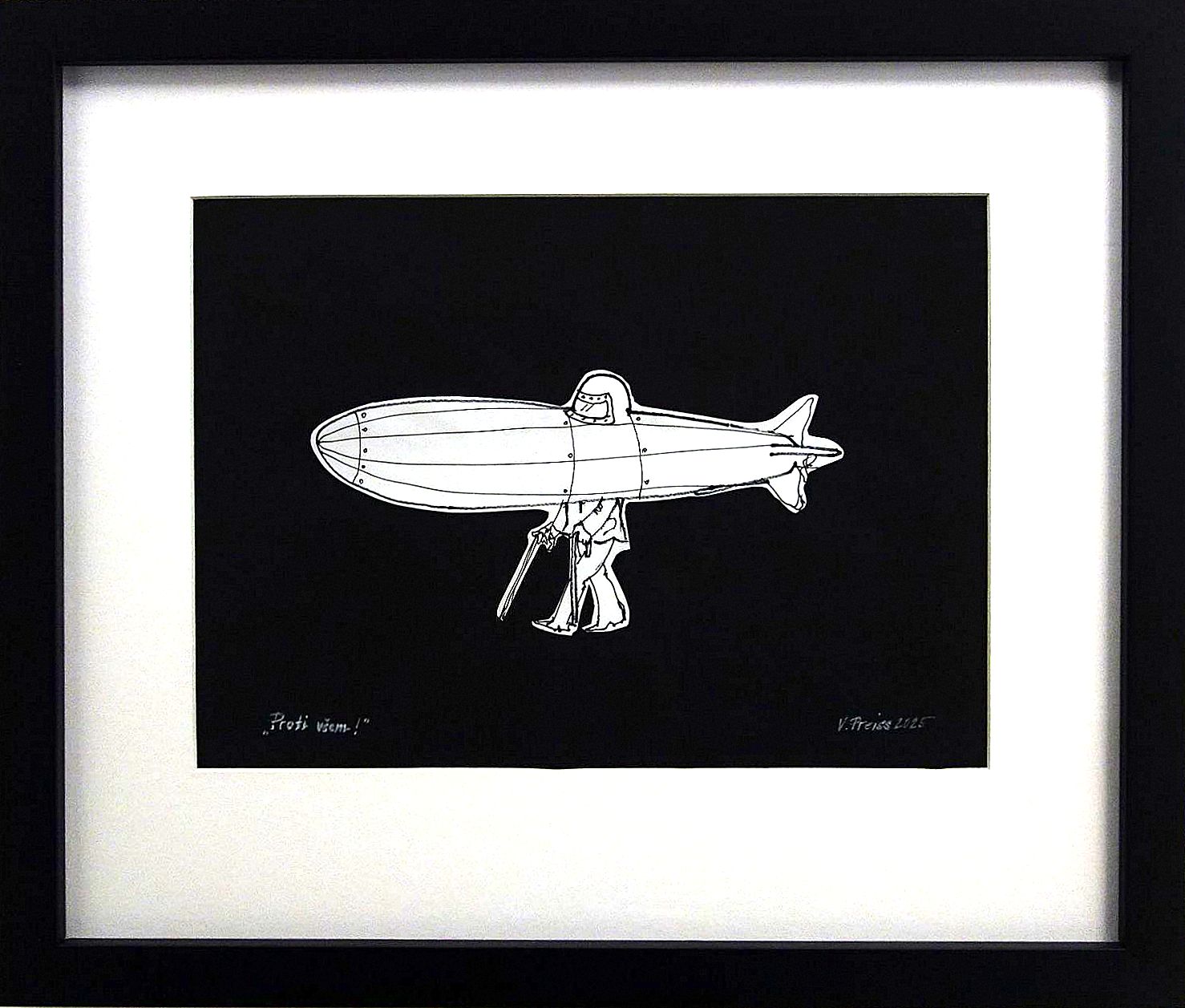 Rozměry včetně rámu: 36x42,5 cm. Technika: kresba. Rám/pasparta.