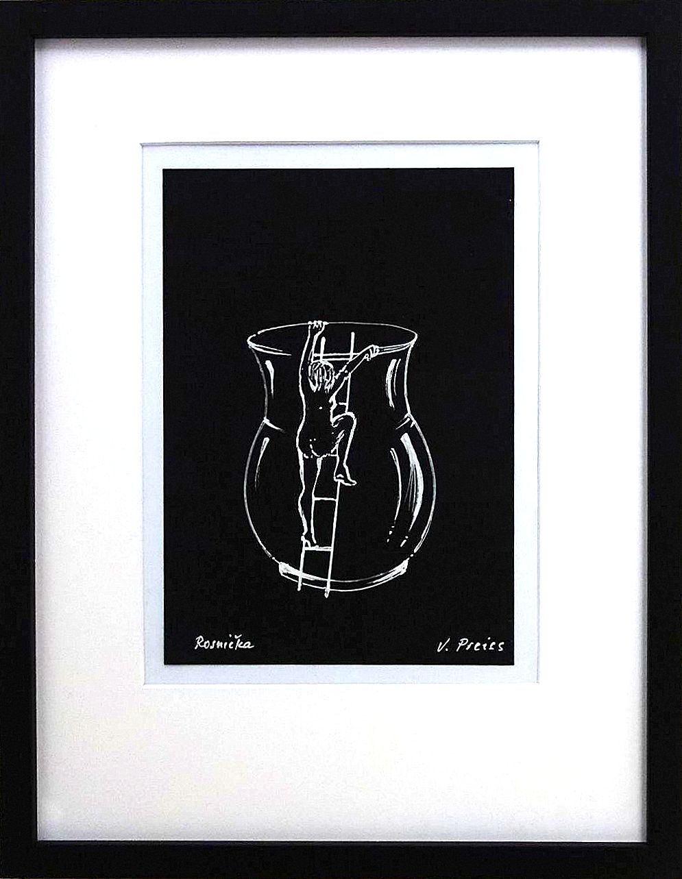 Rozměry včetně rámu: 29x37 cm. Technika: kresba. Rám/pasparta.