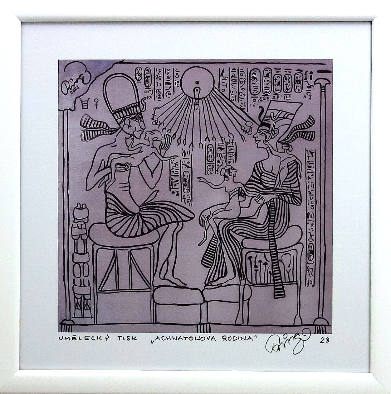 František R.Čech - Achnatonova rodina - signovaný umělecký tisk v rámu