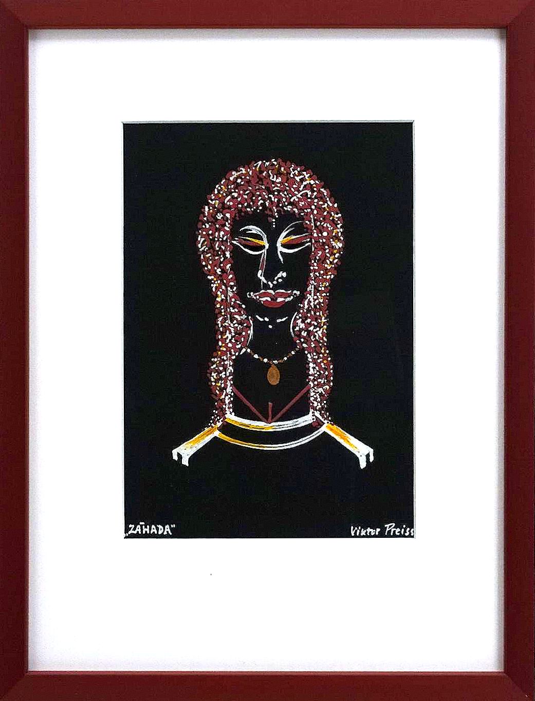 Rozměry včetně rámu: 26x34 cm. Technika: kresba. Rám/pasparta.