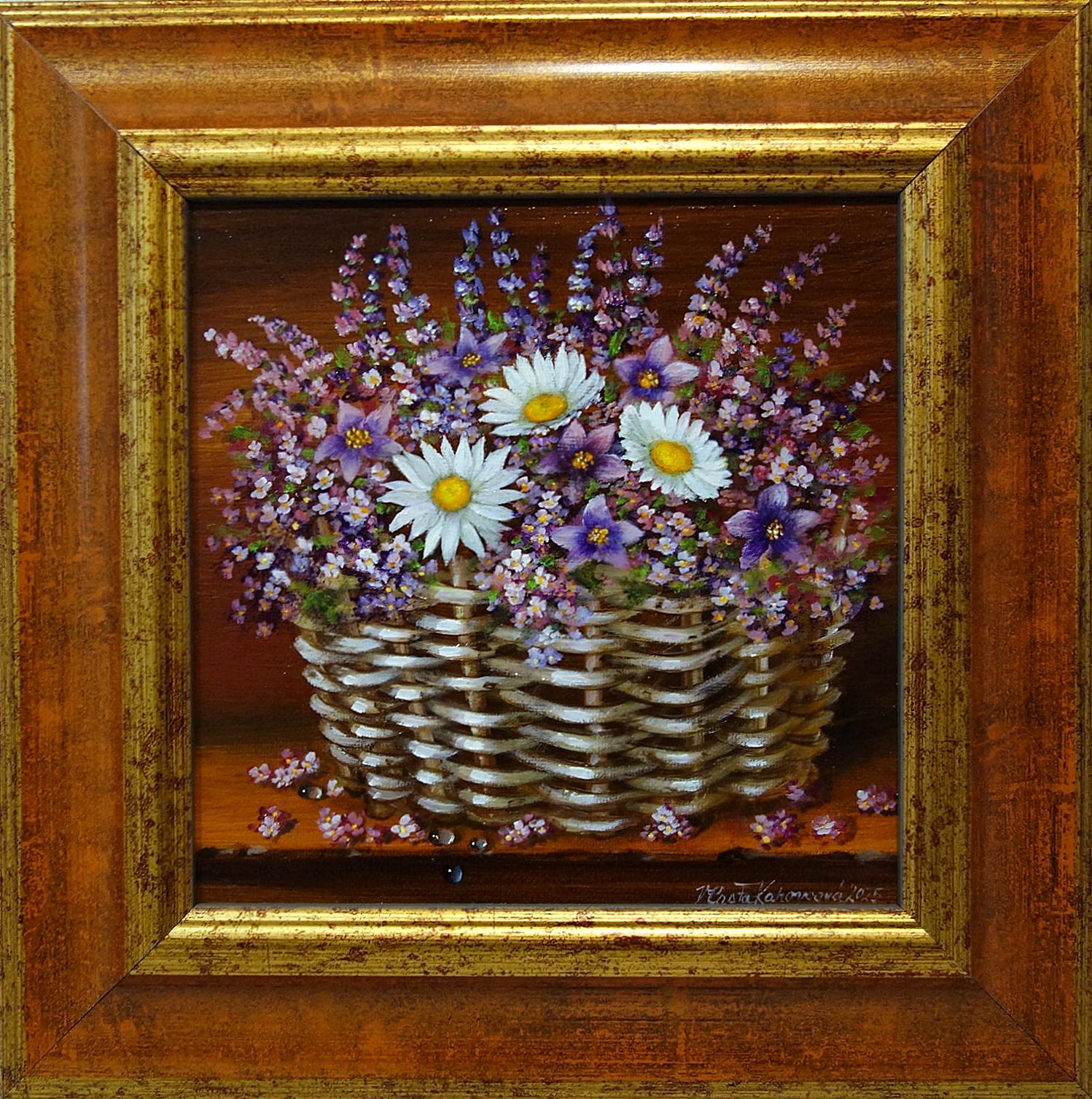 Rozměry včetně rámu: 24,5x24,5 cm. Technika: olejomalba. Rám/deska.