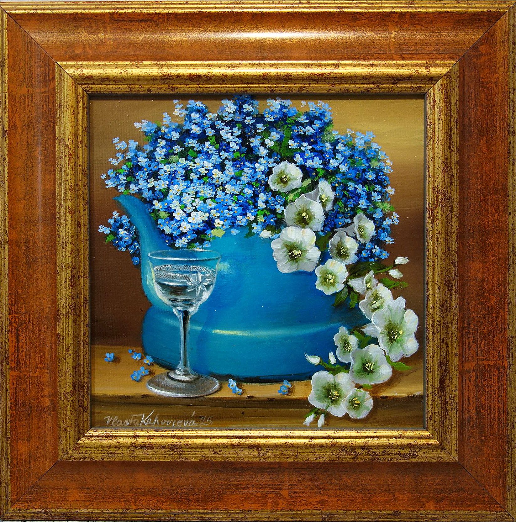 Rozměry včetně rámu: 24,5x24,5 cm. Technika: olejomalba. Rám/deska.