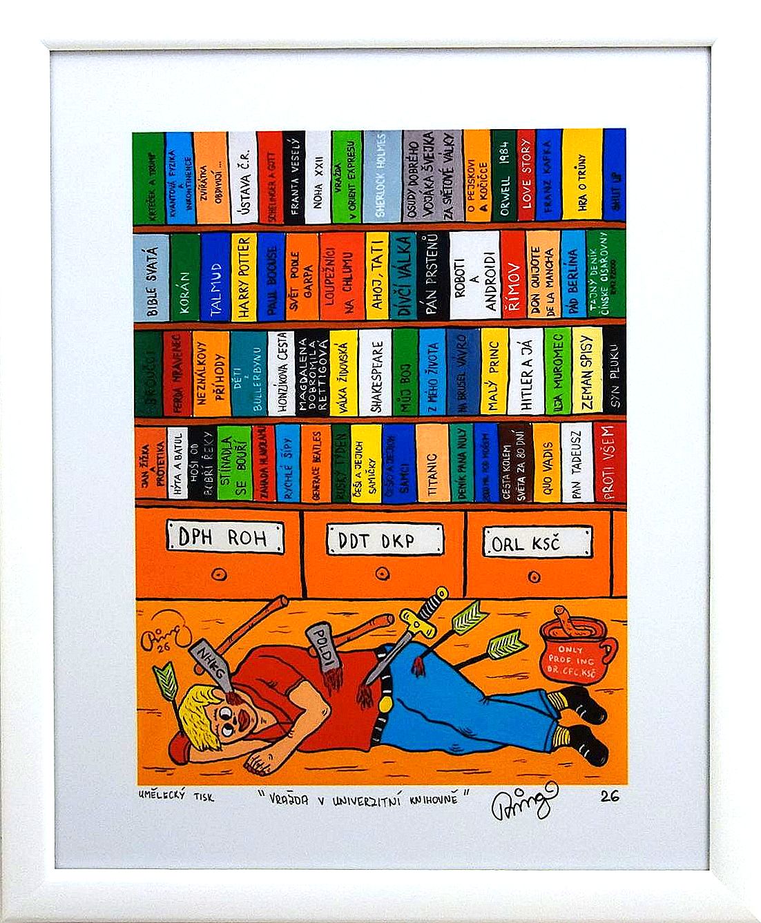 Úvod > František R. Čech > Vražda v univerzitní knihovně - František R. Čech - signovaný umělecký tisk v rámu