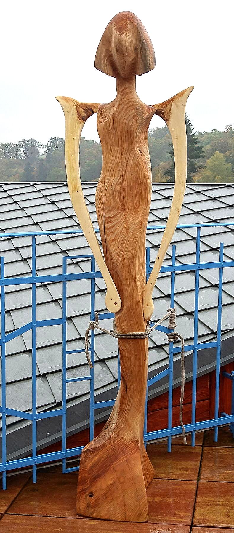 Rozměry: výška - 180 cm. Technika: dřevořezba, jasan a ořech.
